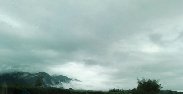 車在暴雨中飛馳,都市的鋼鐵叢林,漸漸在身后遠(yuǎn)去。我們行駛在高速路上,路過高樓林立的郊區(qū),穿越平房聚集的鄉(xiāng)鎮(zhèn),映入眼簾的是連綿不絕的一座座大山,看那雨后的山巒,云在繚繞、霧似升騰,宛如置身仙境。