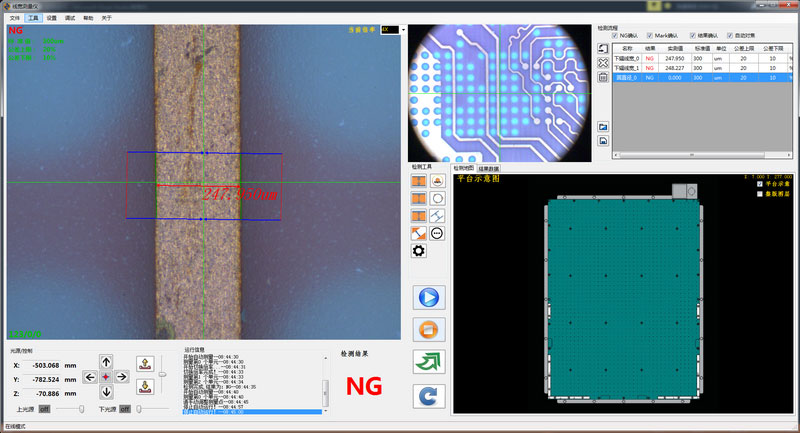 編程后量產(chǎn)測(cè)量速度快,平均測(cè)量≤3S/點(diǎn),快速測(cè)量“線(xiàn)寬/線(xiàn)距/線(xiàn)寬上下幅/圓/金手指線(xiàn)寬等”,分析標(biāo)準(zhǔn)公差值對(duì)比,從而智能判斷被測(cè)板上的測(cè)量值OK或NG。