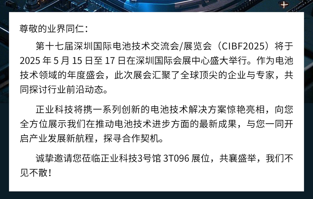 展會(huì)邀請(qǐng) | 正業(yè)科技邀您共赴深圳CIBF2025電池展,共探行業(yè)新未來